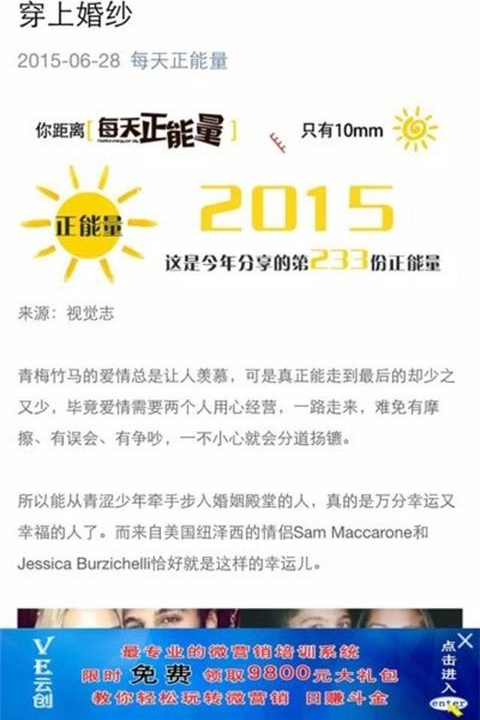 微商通的功能當(dāng)在微信朋友圈或訂閱號(hào)等平臺(tái)看到一篇比較好的文章,通過(guò)微商通平臺(tái)系統(tǒng)加入企業(yè)圖片廣告,然后再分享到微信朋友圈、微信群、QQ空間、QQ群,當(dāng)別人打開(kāi)你分享的文章的同時(shí)就會(huì)看到企業(yè)的產(chǎn)品信息,點(diǎn)擊圖片可以鏈接企業(yè)的手機(jī)站或其他移動(dòng)頁(yè)面。當(dāng)好友再轉(zhuǎn)發(fā)出去的時(shí)候,也會(huì)再次把你的產(chǎn)品信息推廣到更多的人群中去。
